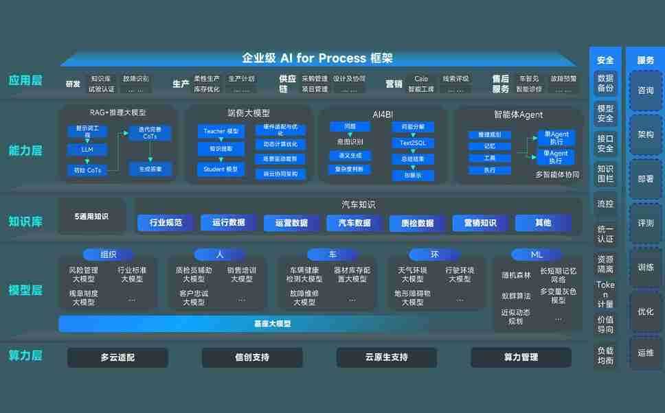 意昂2问学智车解决方案是一套基于AI技术的汽车行业智能化系统,,,覆盖从底层算力到顶层AI应用的全栈方案。。。方案由算力层、、模型层和应用层组成:算力层,,,,方案支持多种一体机配置,,具备云端灵活部署、、、、多云适配以及动态优化计算资源的能力;模型层,,意昂2问学平台版提供了企业级AI应用一站式构建与管理平台,,支持基于后训练强化技术的汽车企业专属模型的训练、、评测和运营;应用层,,,意昂2问学DeepSeek版提供包括超级员工、、、、智能招采、、智能营销、、、智能客服、、、、AI for BI等一系列解决方案,,可助力汽车行业实现数字化转型,,,让管理更智能、、、响应更敏捷。。。。